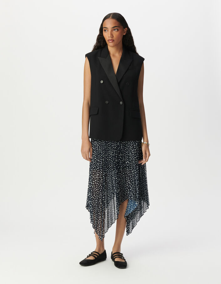 Jupe longue marine plissée imprimé pois Femme