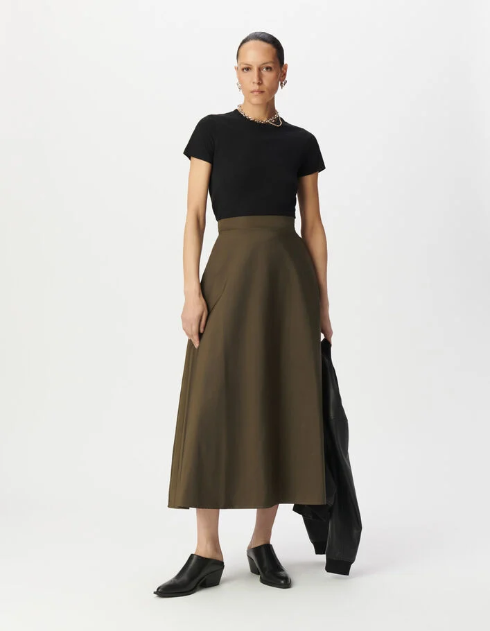 Jupe longue kaki en taffetas Femme