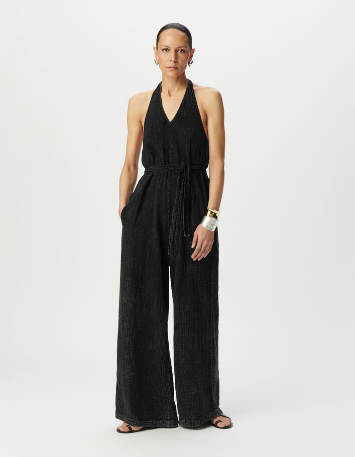 Combinaison dos-nu grise coton bio à ceinturer Femme