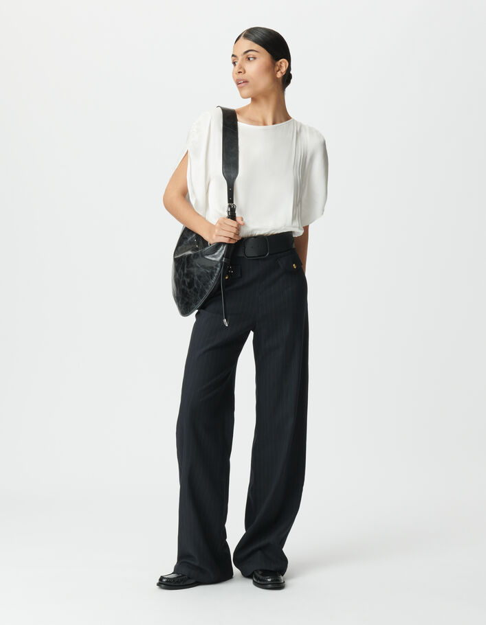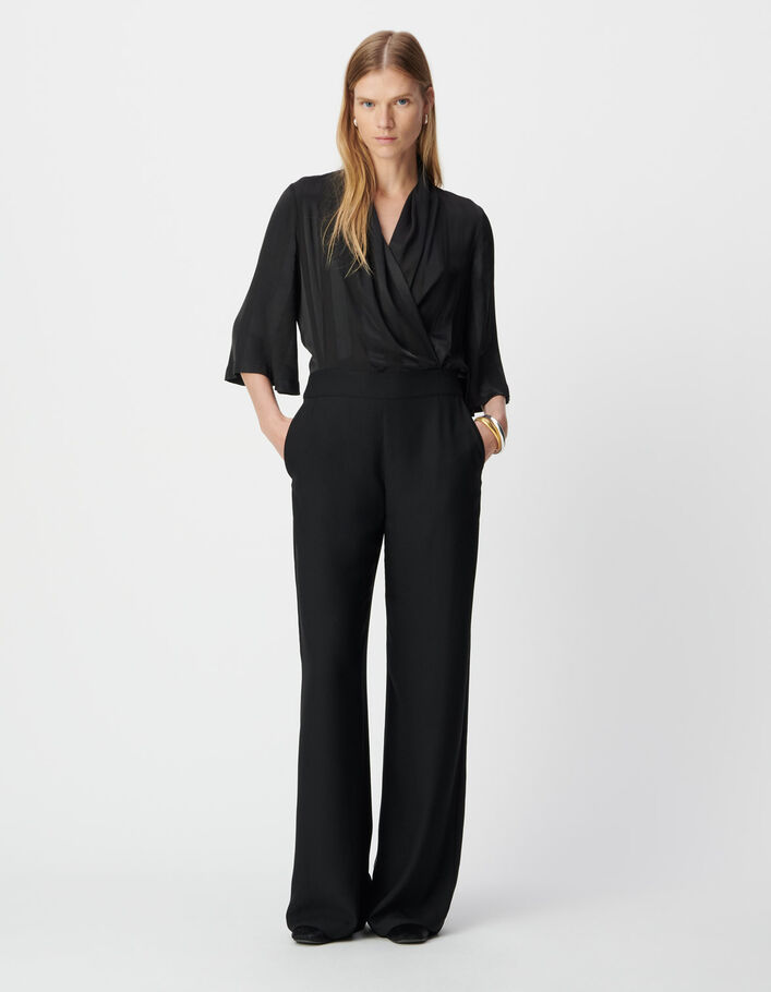 Combinaison bi-matière noire avec haut fluide Femme
