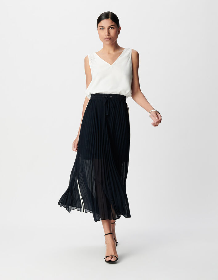Jupe longue marine plissée bandes sport côtés Femme