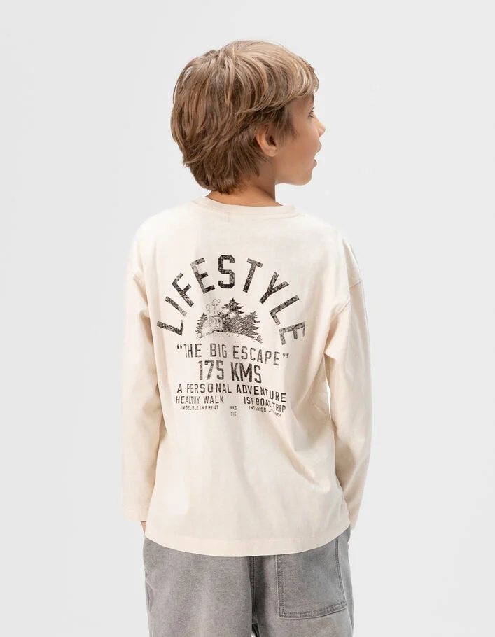 T-shirt beige coton bio maxi print dos garçon