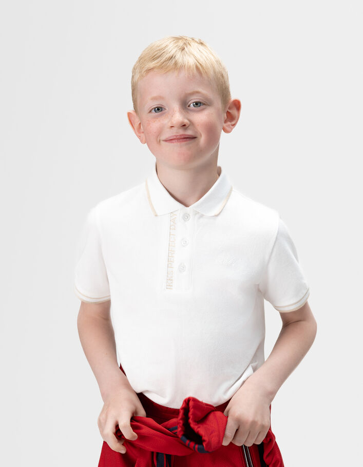 Polo blanc coton bio bords-côtes rayés garçon