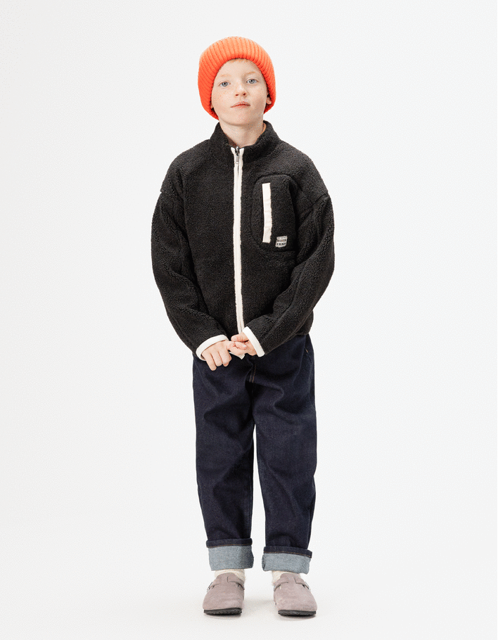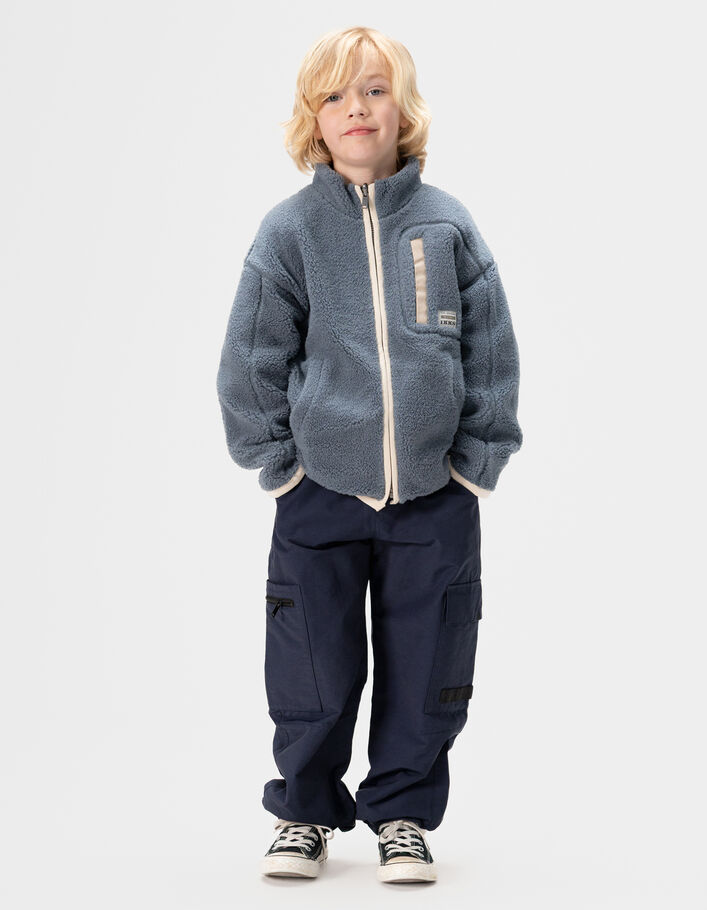 Cardigan réversible sherpa bleu et molleton kaki garçon