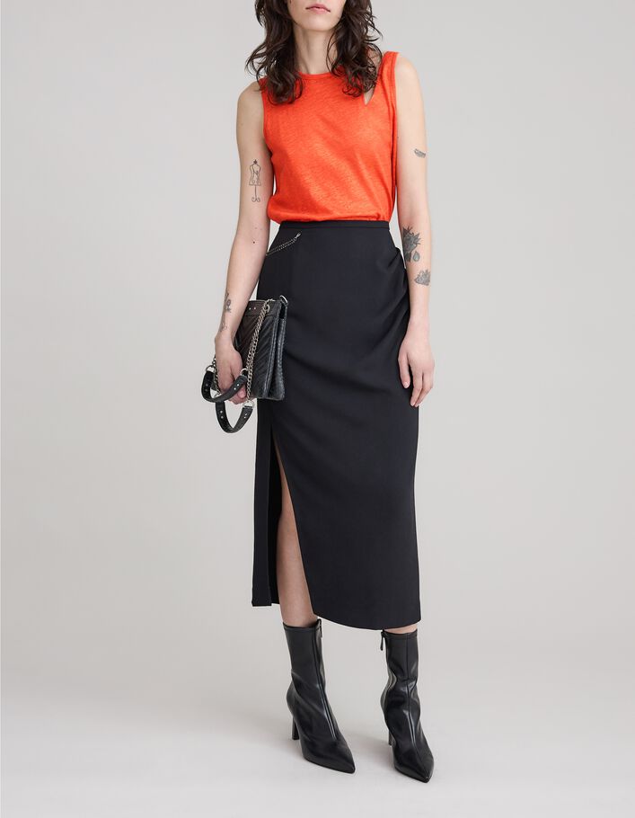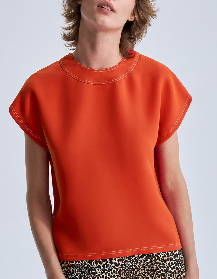 Top tangerine bordé de double surpiqûres Femme