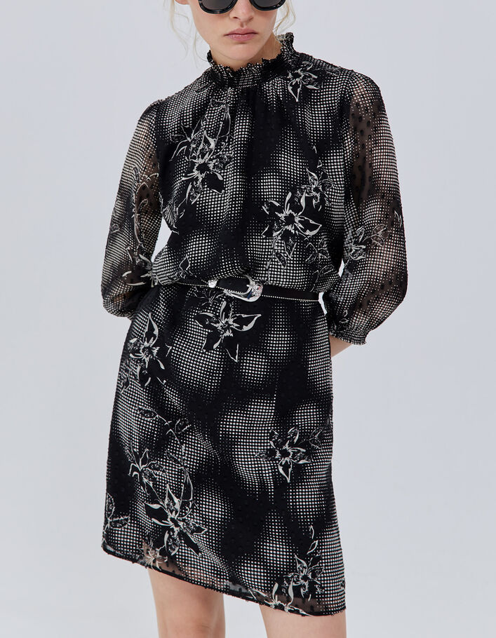 Robe noire imprimé dandy flower écru Femme