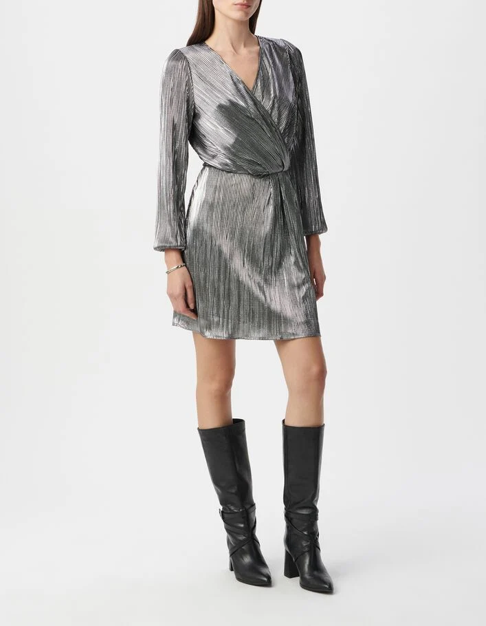 Robe noire métallisée plisssée Femme
