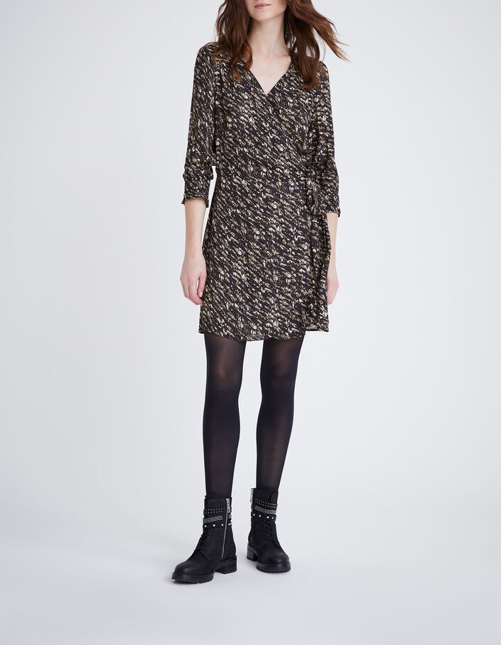 Robe portefeuille noire imprimé fusain Femme