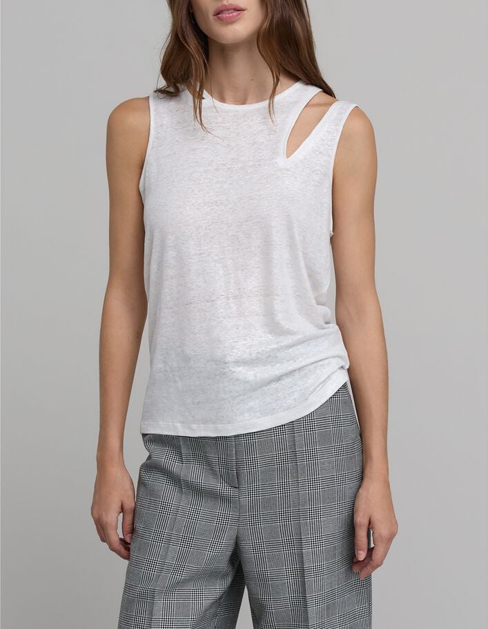Tee-shirt blanc asymétrique maille lin irisée Femme