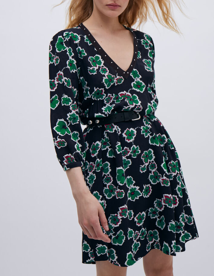Robe noire imprimé maxi floral à col clouté Femme
