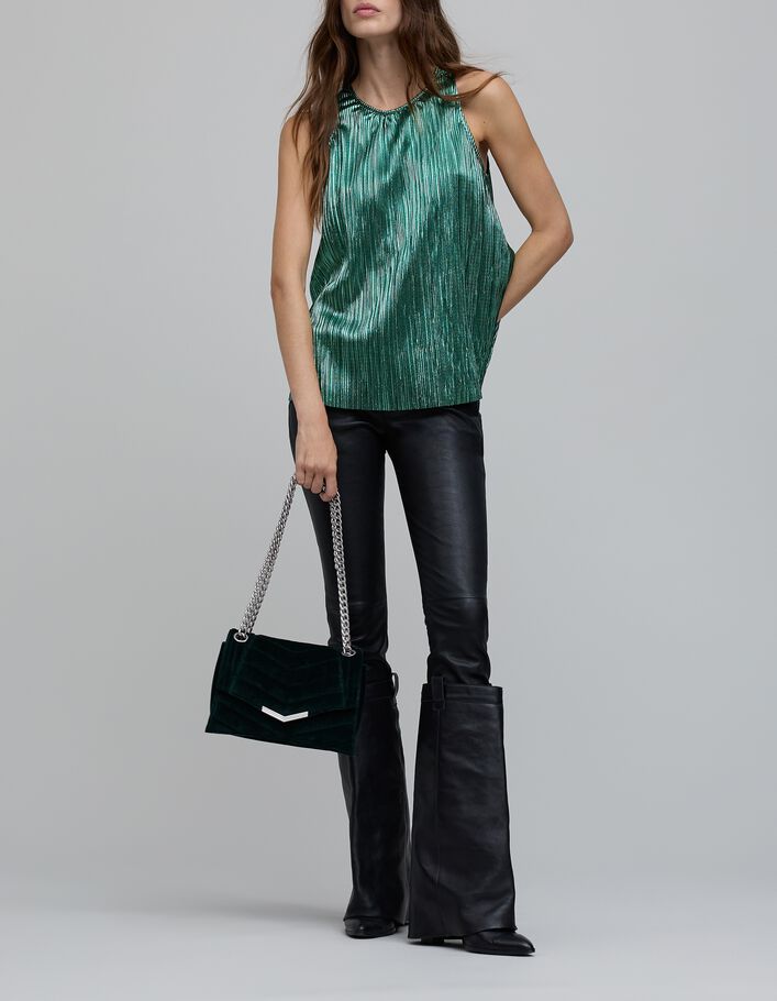 Top émeraude métallisé plissé Femme