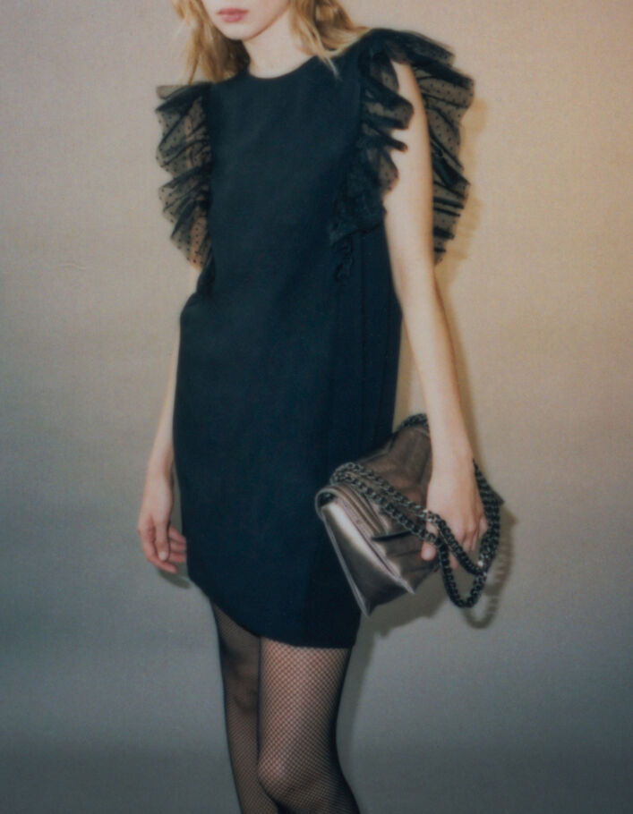 Robe noire volants tulle plumetis Femme