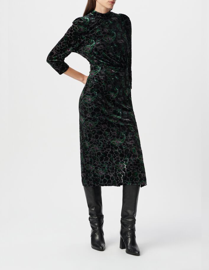 Robe noire imprimé cachemire baroque velours dévoré Femme