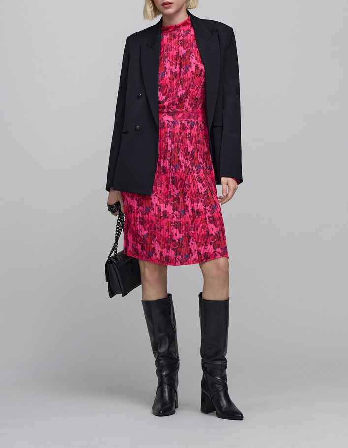 Robe rose plissée imprimé fleurs origami Femme