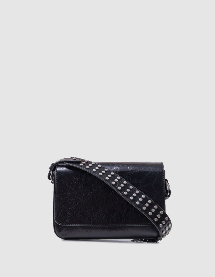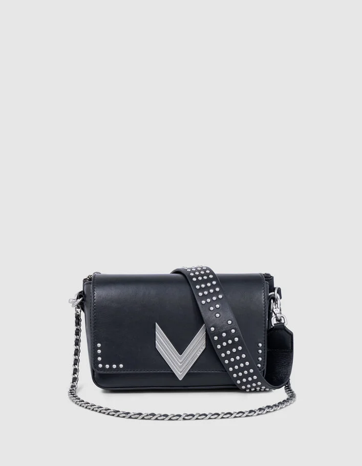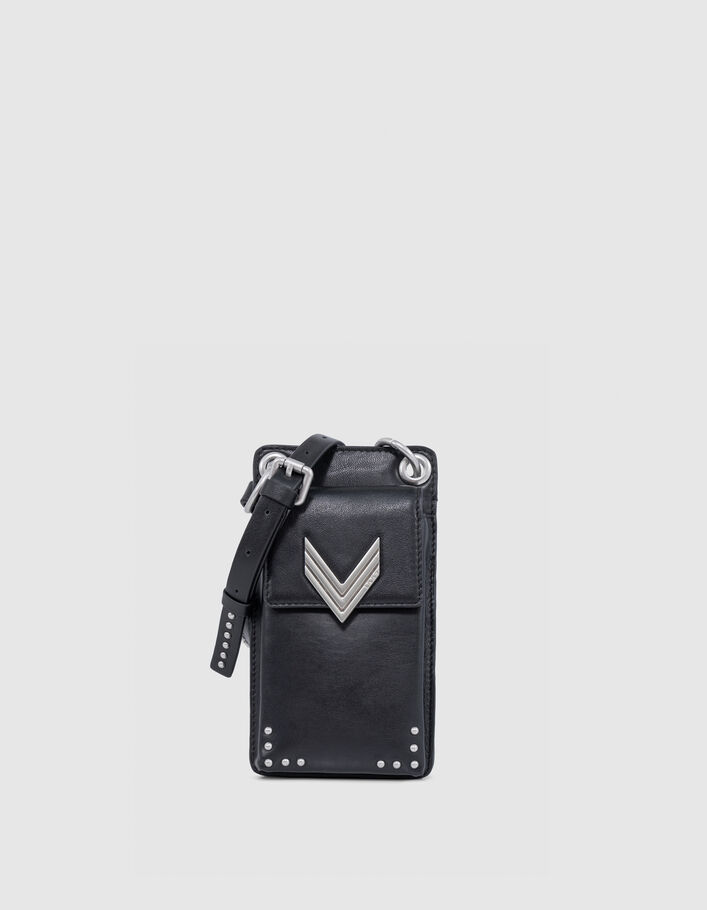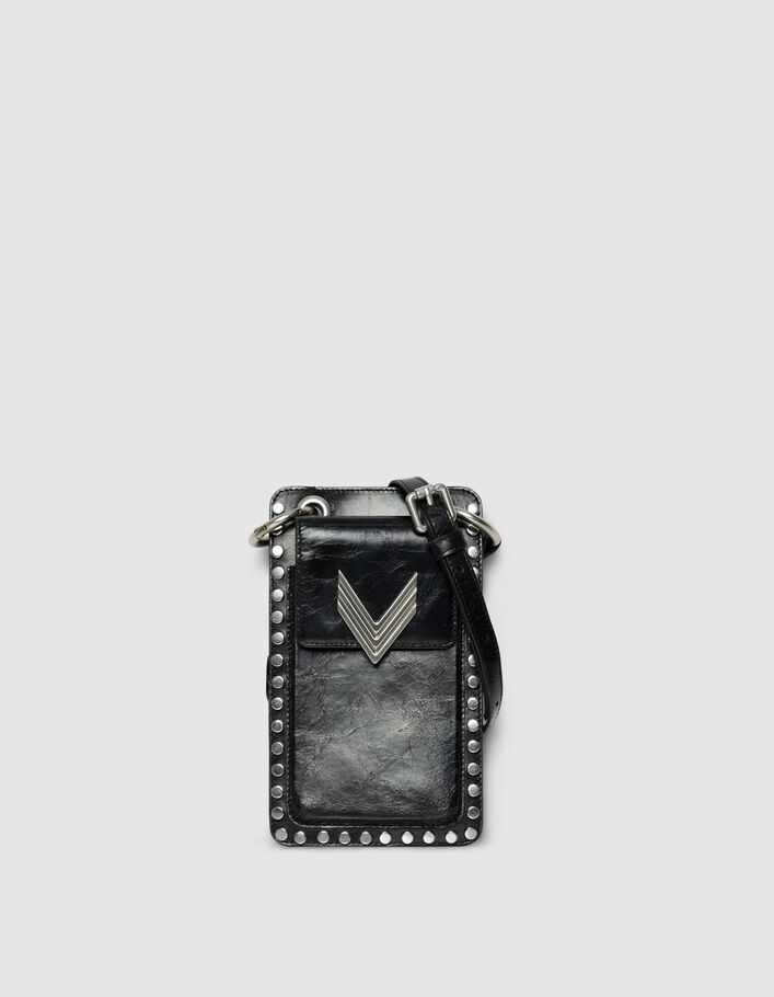 Phone bag 111 noir cuir bandoulière clous Femme
