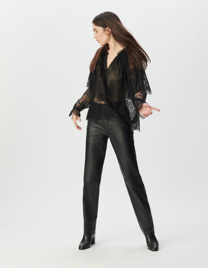 Blouse noire dentelle large volant Femme
