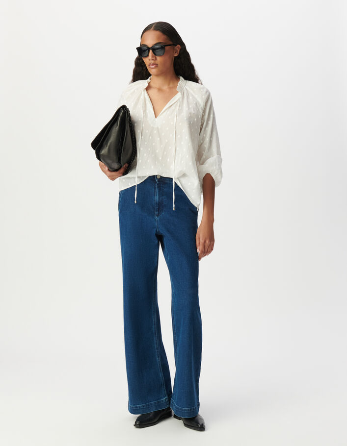 Blouse blanche col collerette à motif plumetis Femme