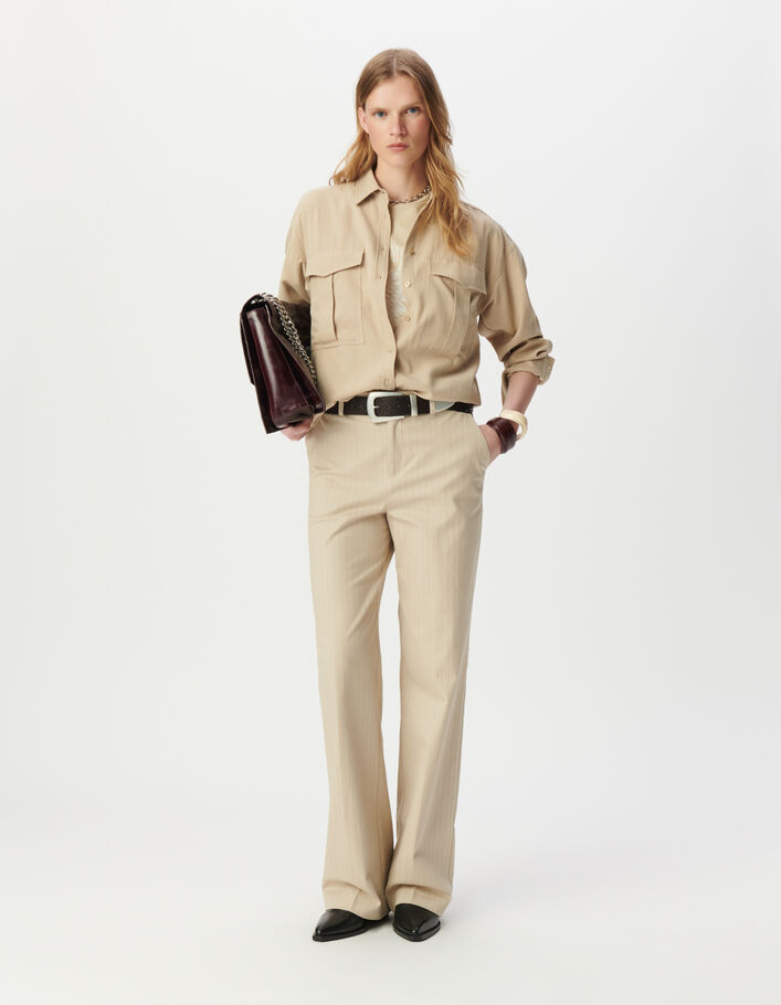 Chemise beige oversize avec maxi poches Femme