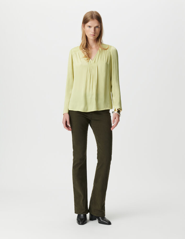 Blouse verte fluide détails smocks Femme