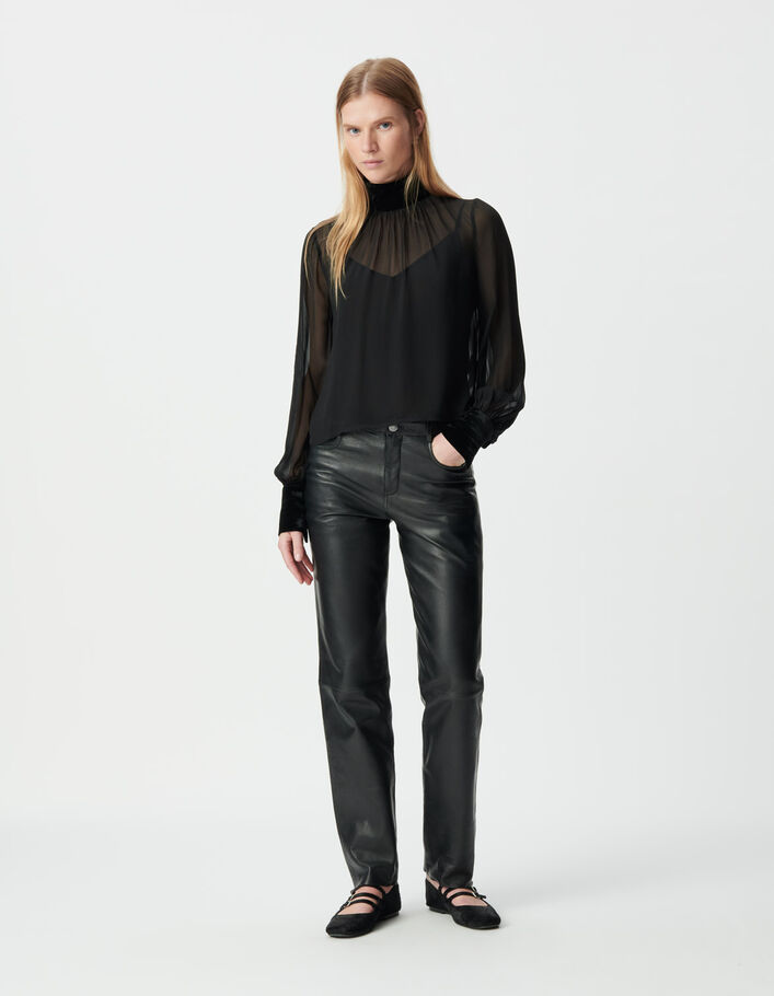 Blouse voile noire détails velours froissé Femme