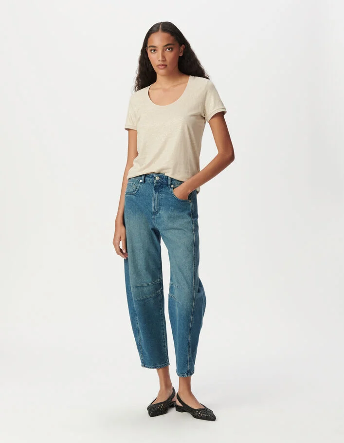 Tee-shirt manches courtes beigelurex maille ajourée Femme