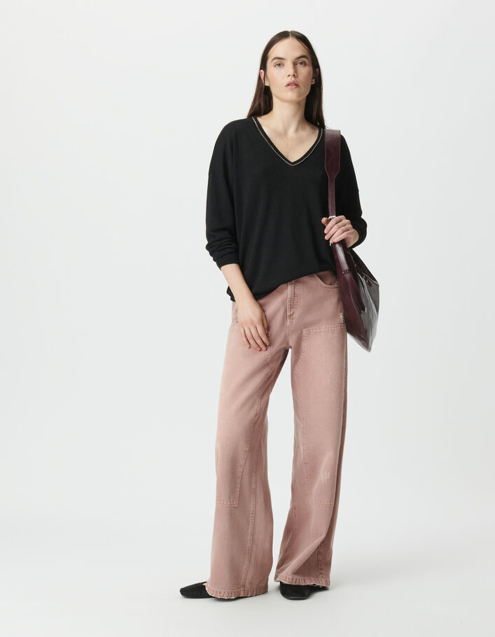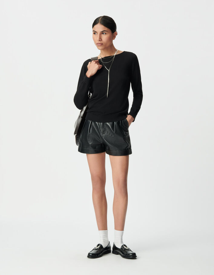 Pull noir tricot fin lurex encolure bijou Femme