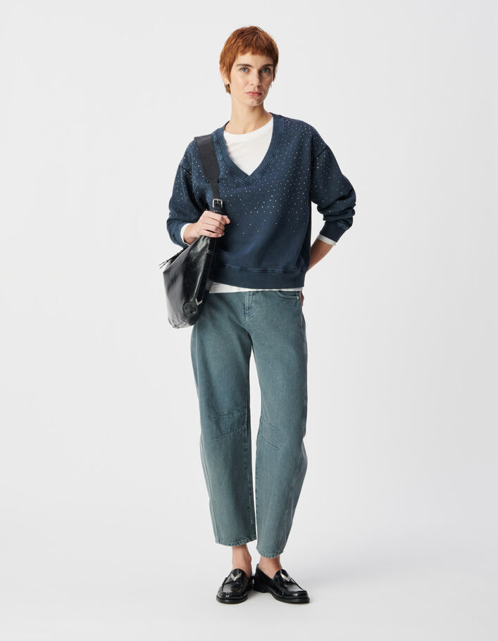 Sweat encolure V marine coton bio détails strass Femme