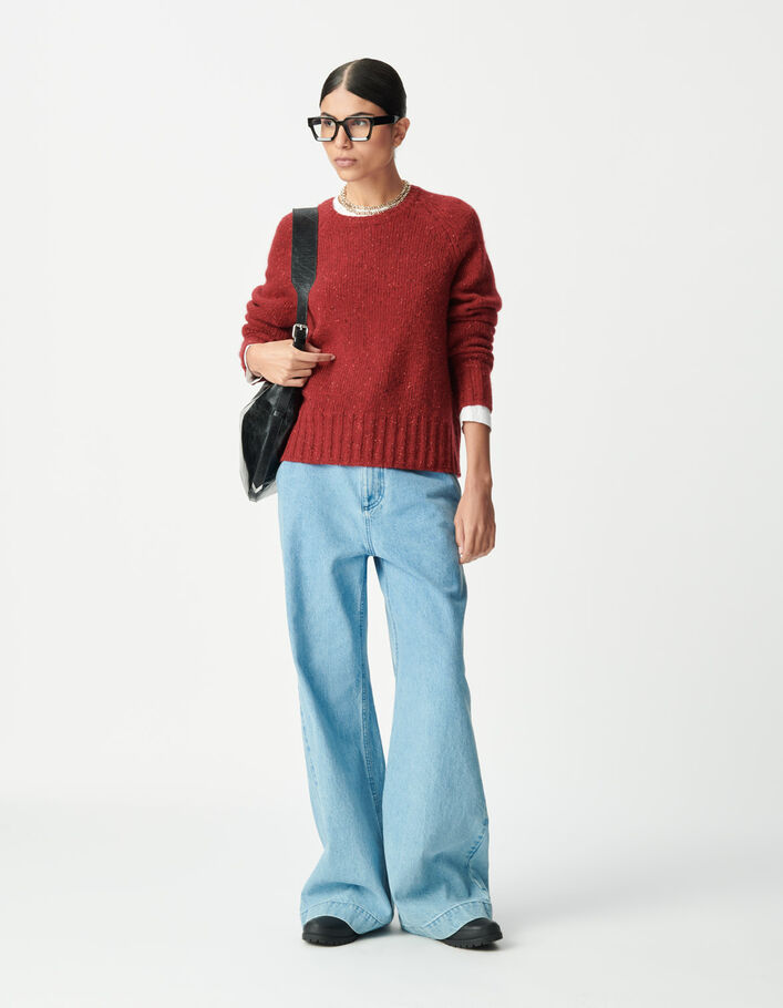 Pull rouge en maille à col rond pour femme