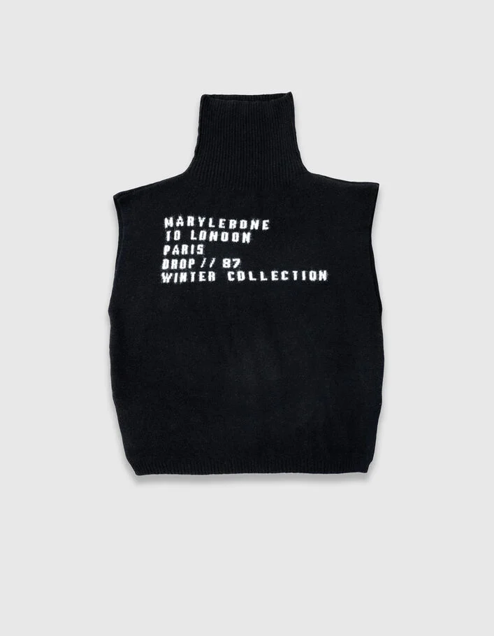 Poncho noir tricot jacquard message Femme