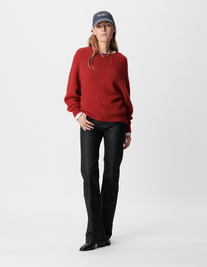 Pull rouge tricot manches chauve-souris Femme