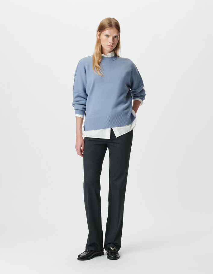 Pull oversize bleu tricot longueur cropped Femme
