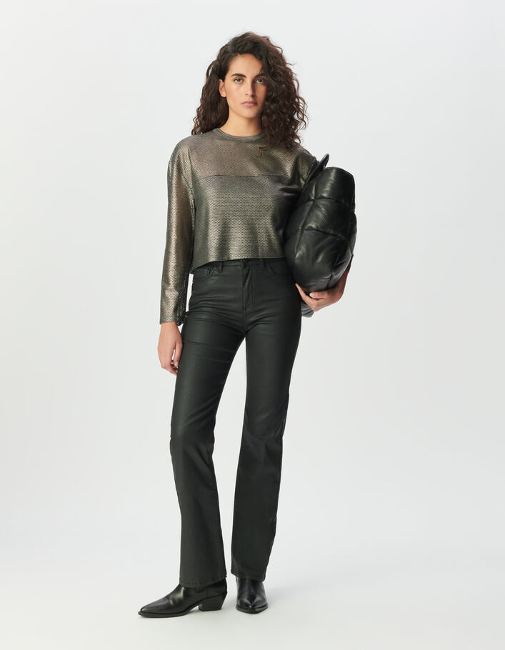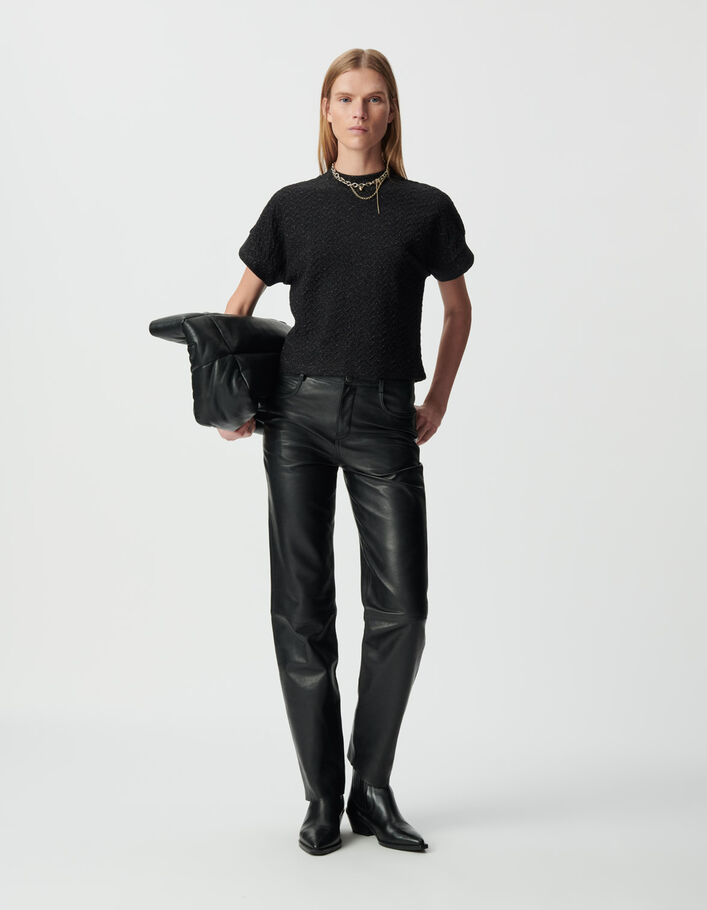 Tee-shirt manches courtes noir lurex maille ajourée Femme