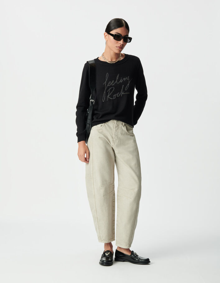 Pull noir tricot broderie message Femme