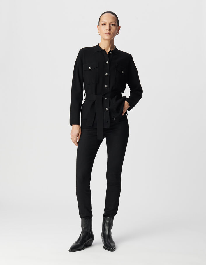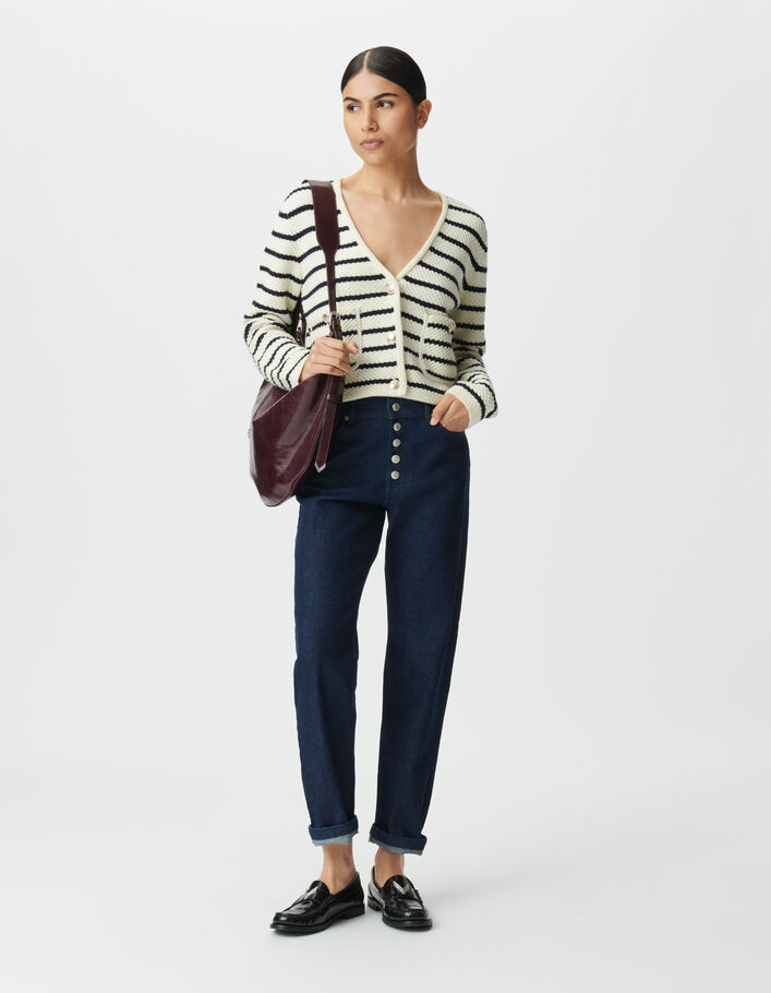Cardigan sésame tricot pailleté motif chevrons ajouré dos Femme