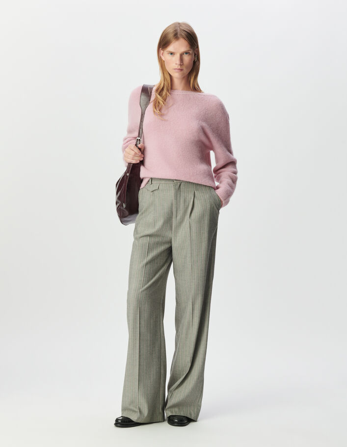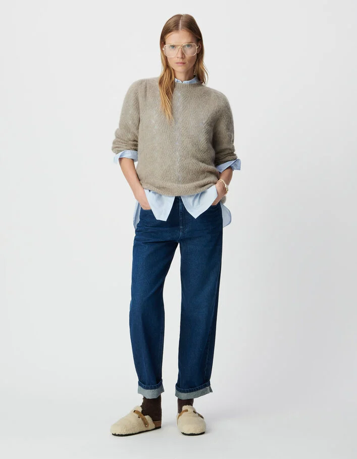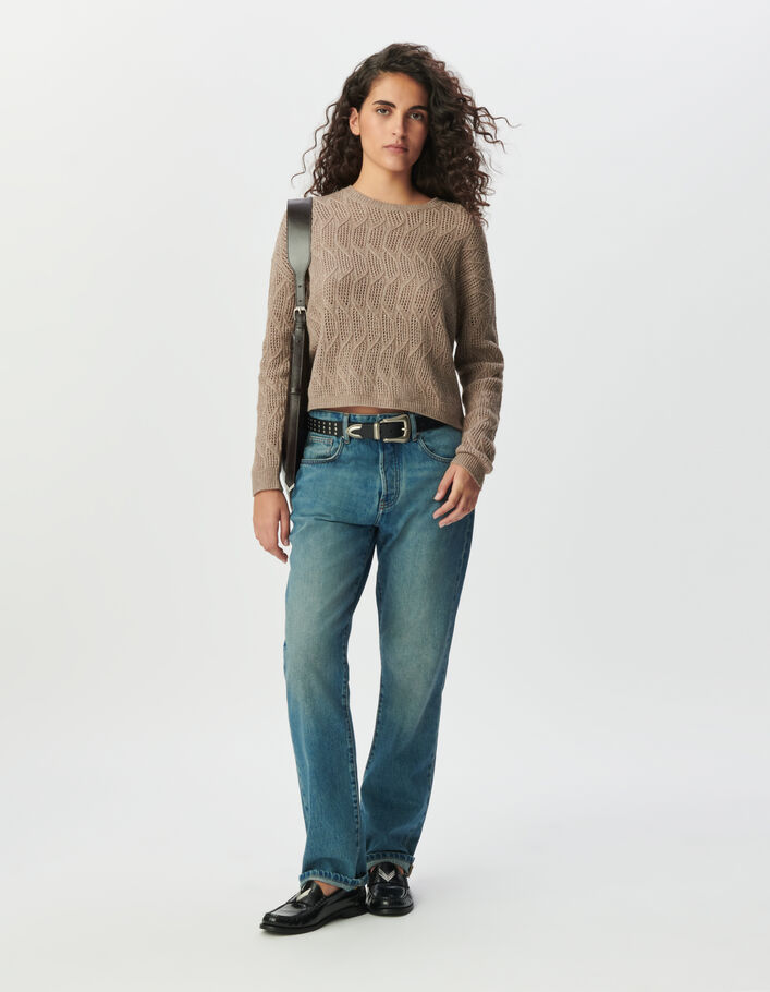 Pull beige tricot mohair mélangé torsades fantaisie Femme