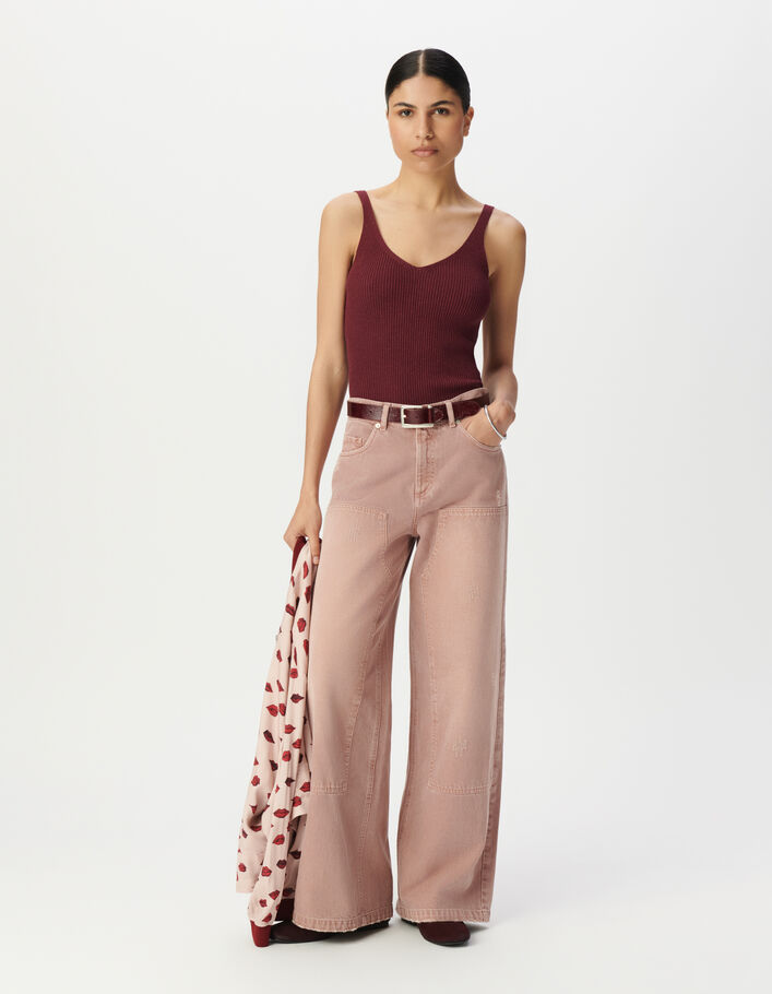 Pull bretelles bordeaux tricot fantaisie côtelé Femme