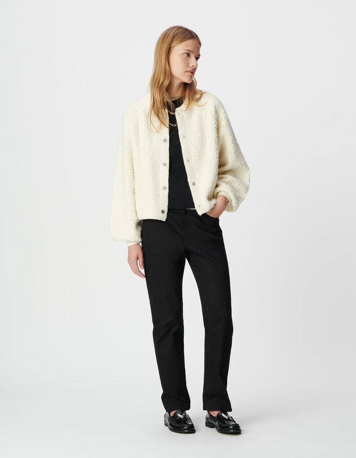 Cardigan blanc tricot duveteux poches à rabat pressionné Femme