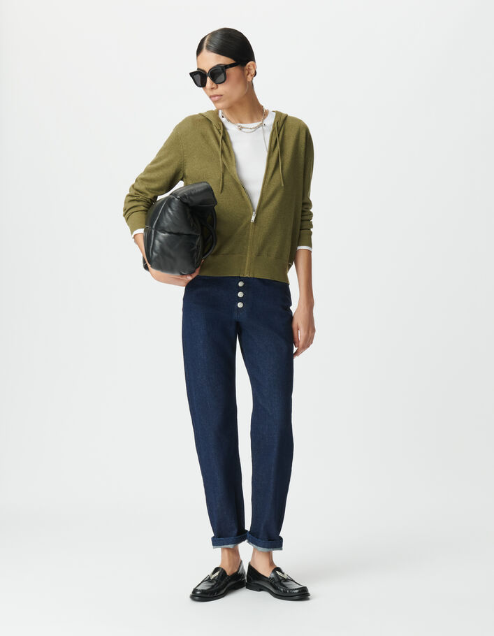 Cardigan à capuche kaki tricot lurex chevron dos Femme