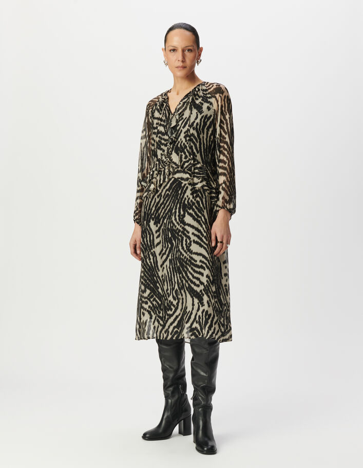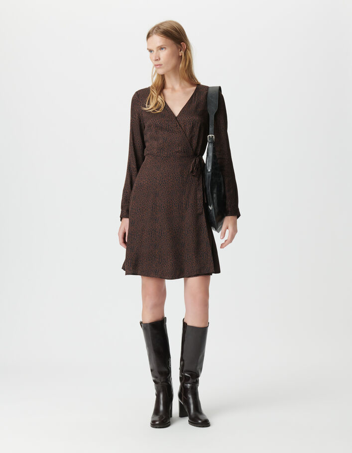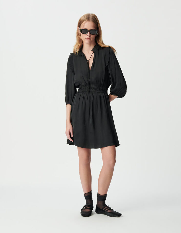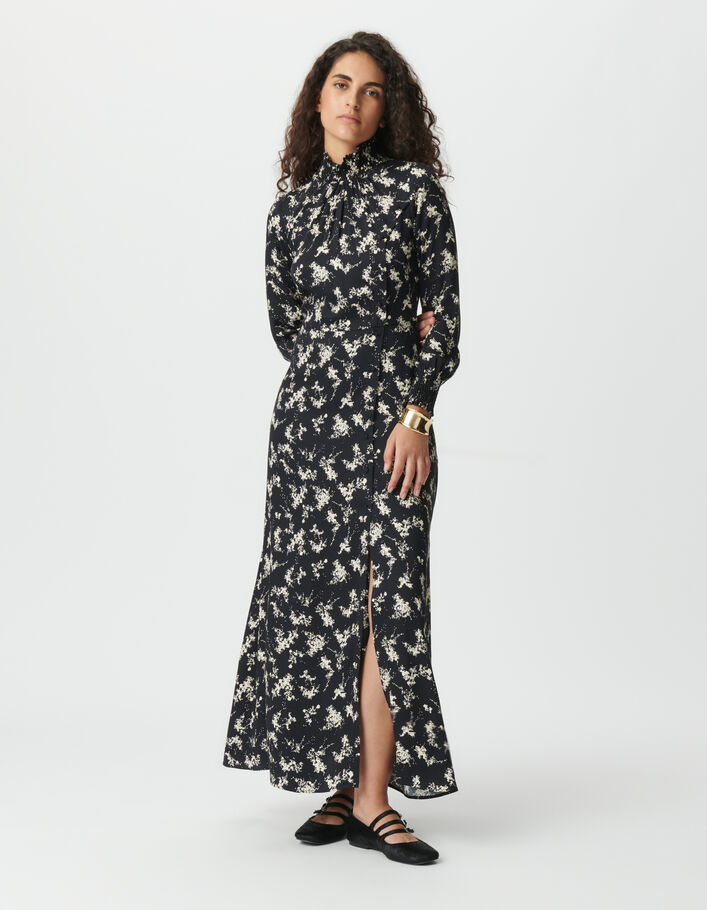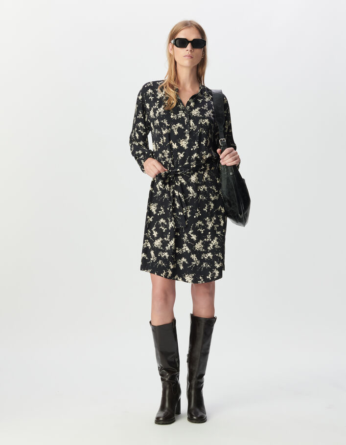 Robe noire imprimé fleurs sauvages ceinture amovible Femme