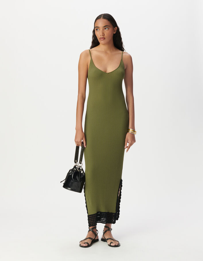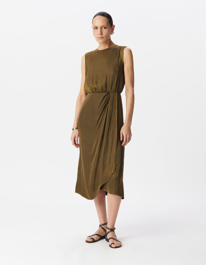 Robe sans manches grise gaze de coton encolure V dos Femme