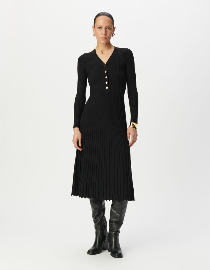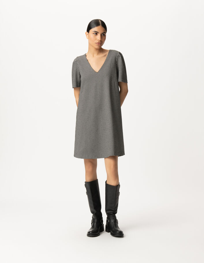 Robe noire motif pied-de-poule réversible devant/dos Femme