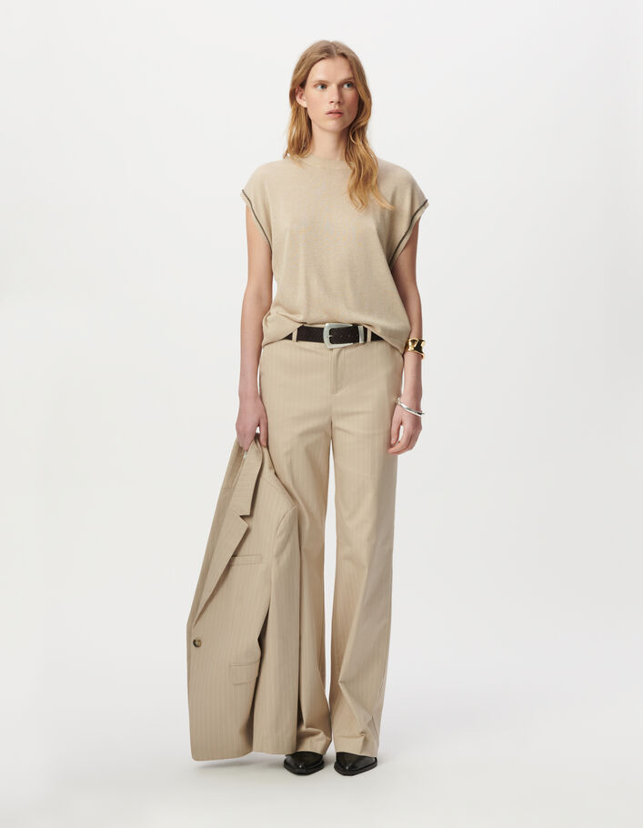 Pantalon de tailleur beige motif rayures tennis Femme