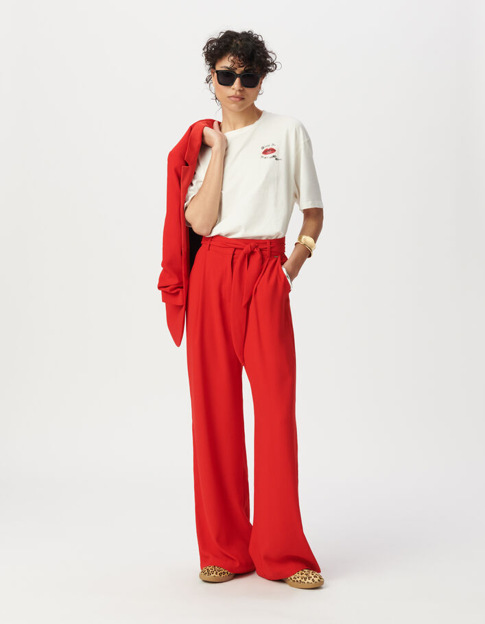 Pantalon de tailleur large rouge ceinturé Femme