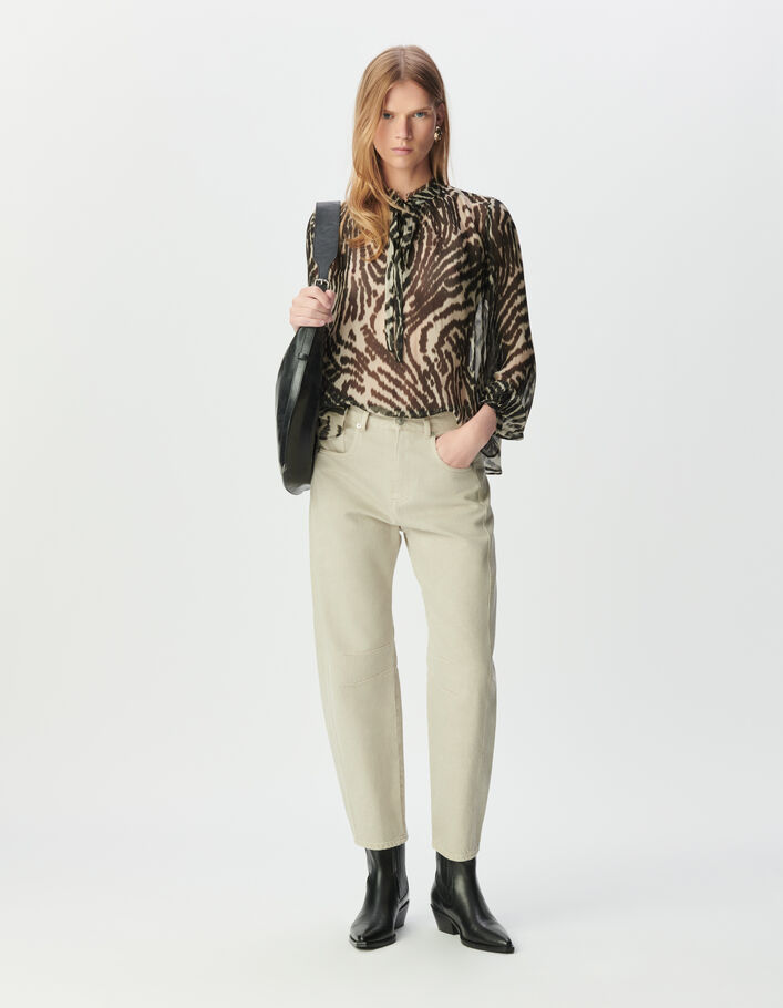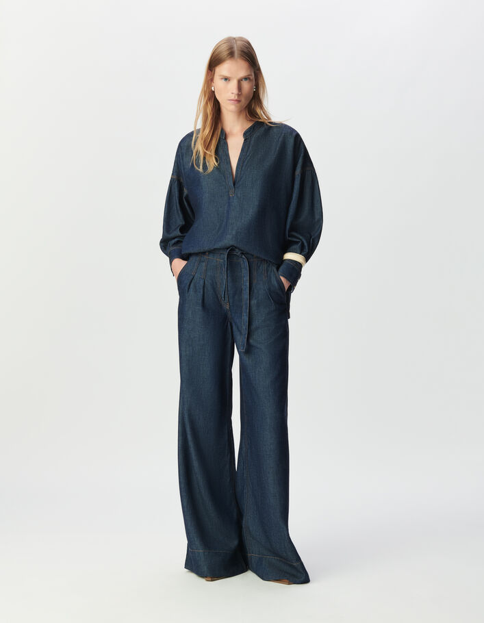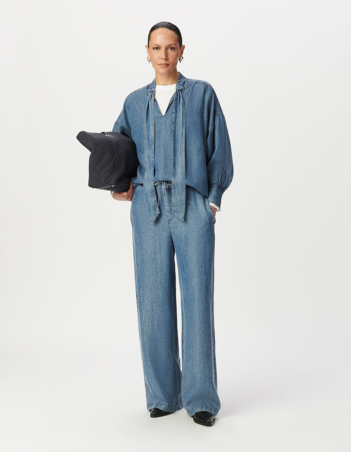 Blouse à lavallière bleue en Lyocell® fluide Femme