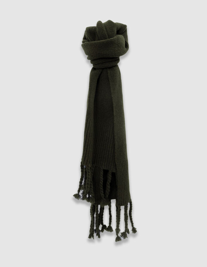 Echarpe kaki tricot à franges Femme