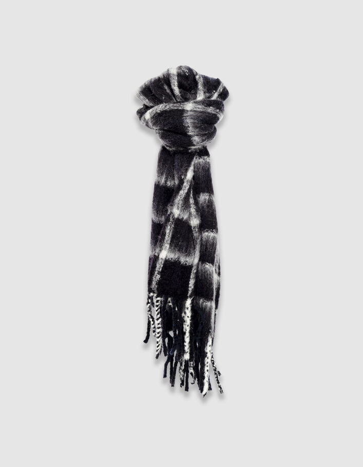 Echarpe noire moelleuse motif carreaux Femme