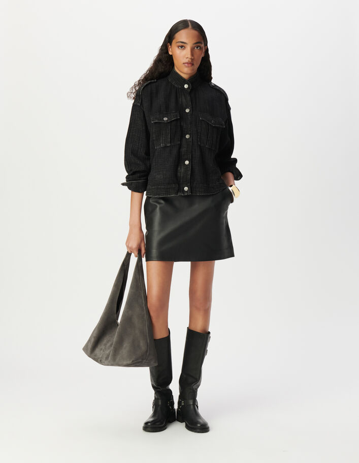 Veste oversize noire cuir coulisse taille Femme