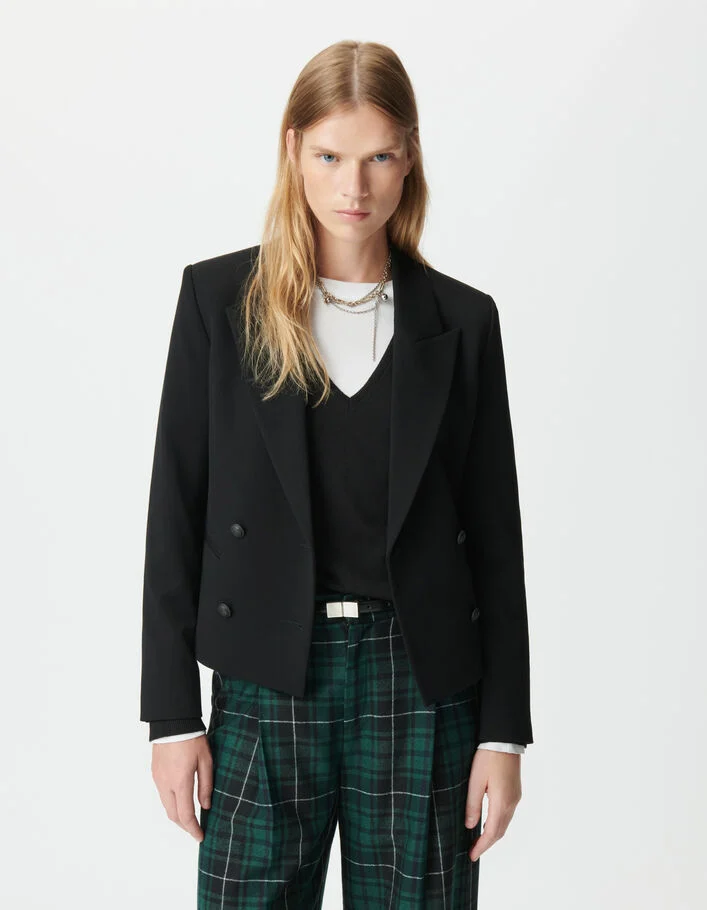 Veste de tailleur noire courte double boutonnage Femme