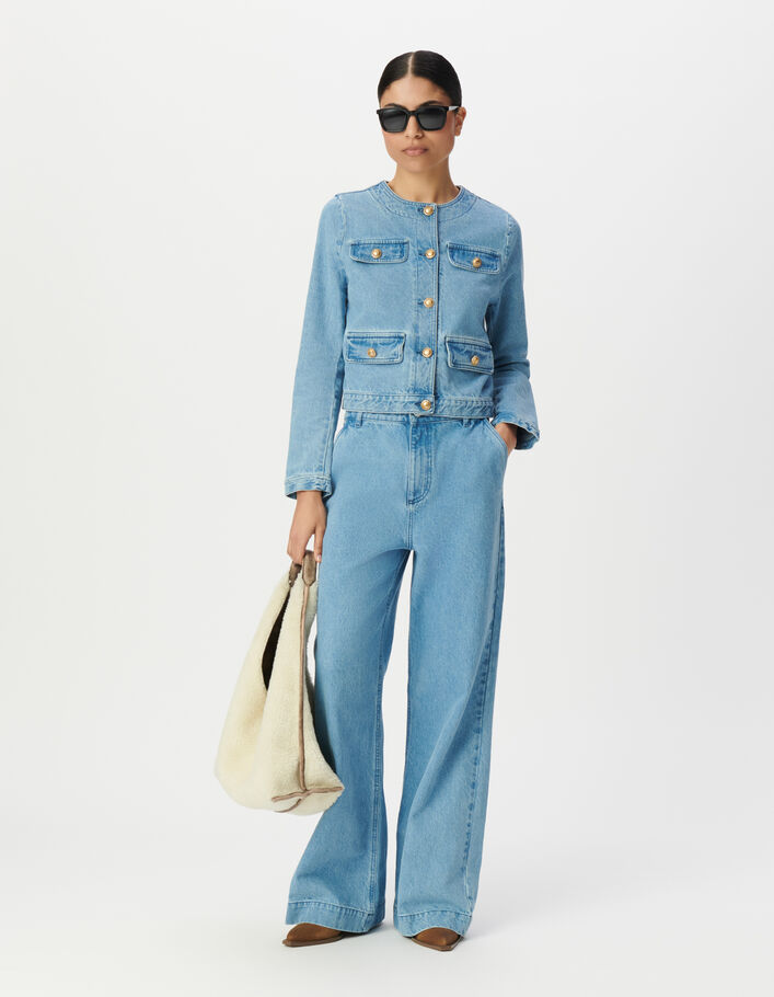 Veste en jean bleu waterless sans col Femme