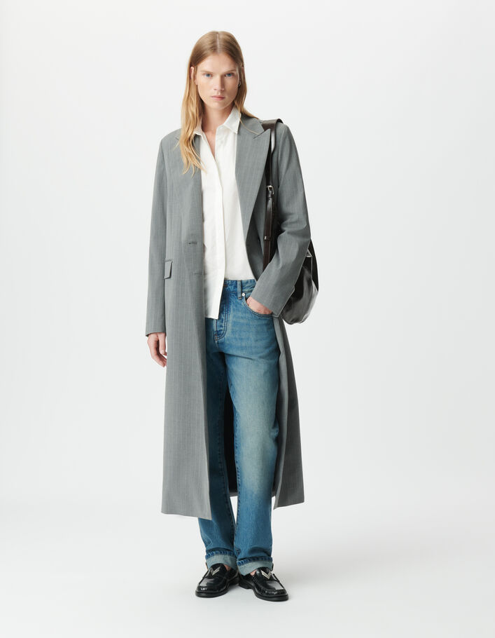 Veste de tailleur longue grise motif rayures tennis Femme